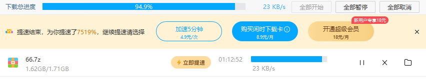 解析站+浏览器UA扩展,也可以提取直链+UA扩展,前者慢速,后者10M/s不是问题。