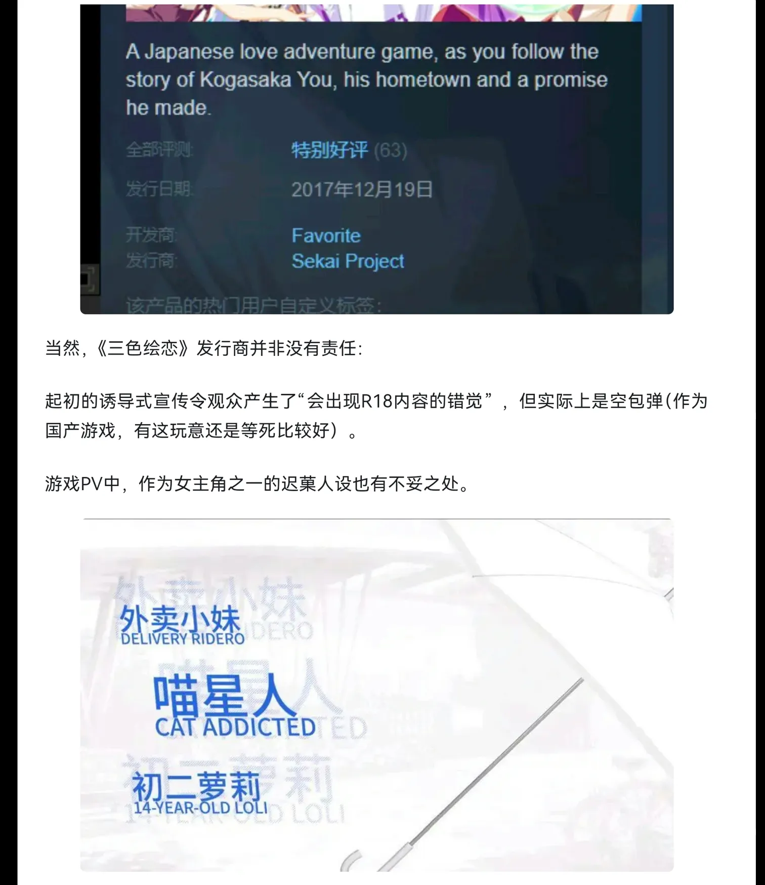 而且当年可是被骂翻了呀,今年7月至9月那种国产所谓糖衣炮弹可色色更是引燃玩家怒火在贴吧、b站、ad论坛都口吐芬芳属于某国产第八作品爆雷。你还往坑里跳,我看一下始作俑者三色某游当年被骂翻还搜狐新闻的稿手那一次