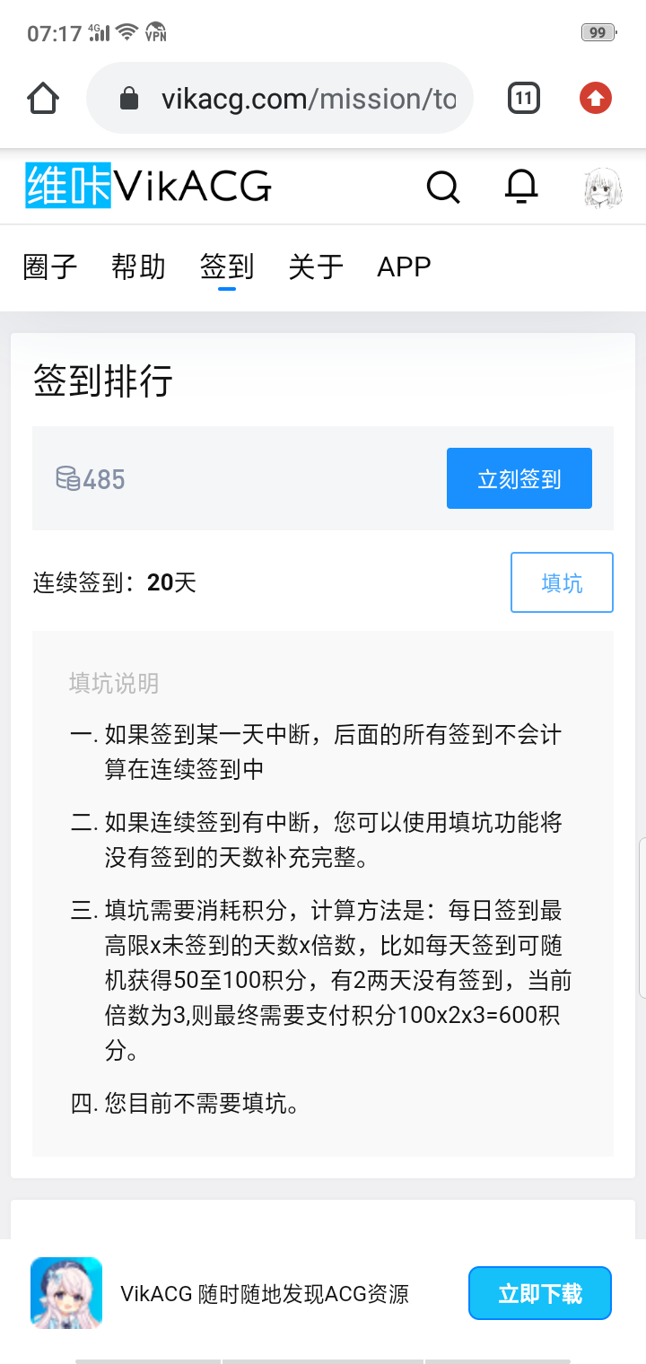 点击领取今天的签到积分
