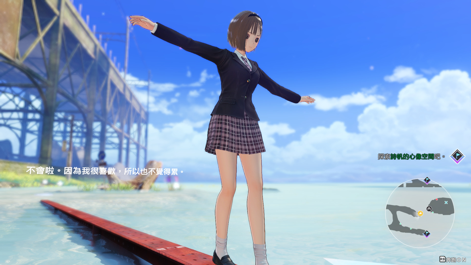 遊戲在光線的部分處理得非常好,儘管他沒有光線追蹤(聽說是偽光線追蹤?),舉個例子:你在出教室後看向走廊你會看到光線透過窗戶進來,一格格光影彷彿你就置身其中。 其他場景則沒有特別令人驚豔的地方,倒是被水包圍的學校以及連結"外面"的水上鐵軌讓我想到宮崎駿的神隱少女。 另外這邊建議把DOF,也就是景深關閉,開了覺得自己像近視800度...動態模糊也可以斟酌關閉。遊戲性:8分