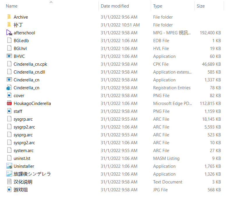- 用最新版winrar解压后直接执行Cinderella_cn.exe游玩。如果电脑系统地区不是‘简体中文,中国’,请用Locale Emulator转区执行Cinderella_cn.exe游玩。
