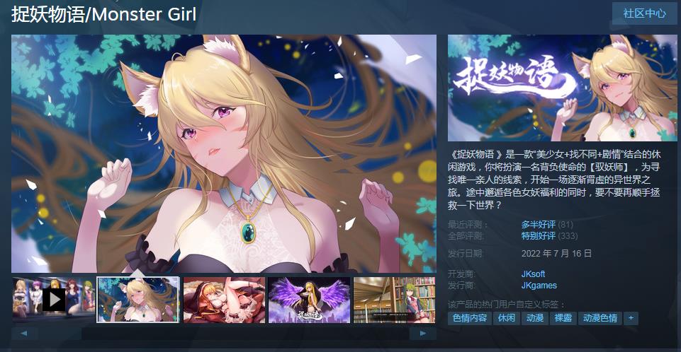 《捉妖物语 》是一款“美少女+找不同+剧情”结合的休闲游戏,你将扮演一名背负使命的【驭妖师】,为寻找唯一亲人的线索,开始一场逐渐肾虚的异世界之旅。途中邂逅各色女妖福利的同时,要不要再顺手拯救一下世界?