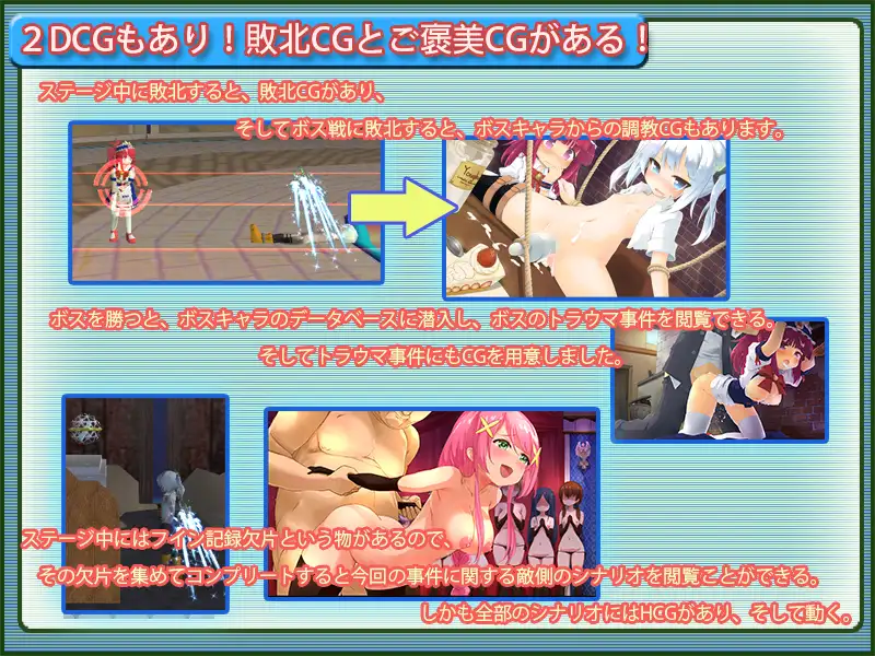 当主角由香在boss战中被击败时,将播放特殊的强奸CG。