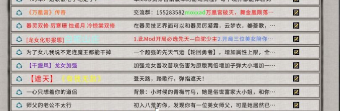 整合各种mod资源,内含:万凰宫,白驼少主,武动八荒,逆天邪神等一些列18+mod