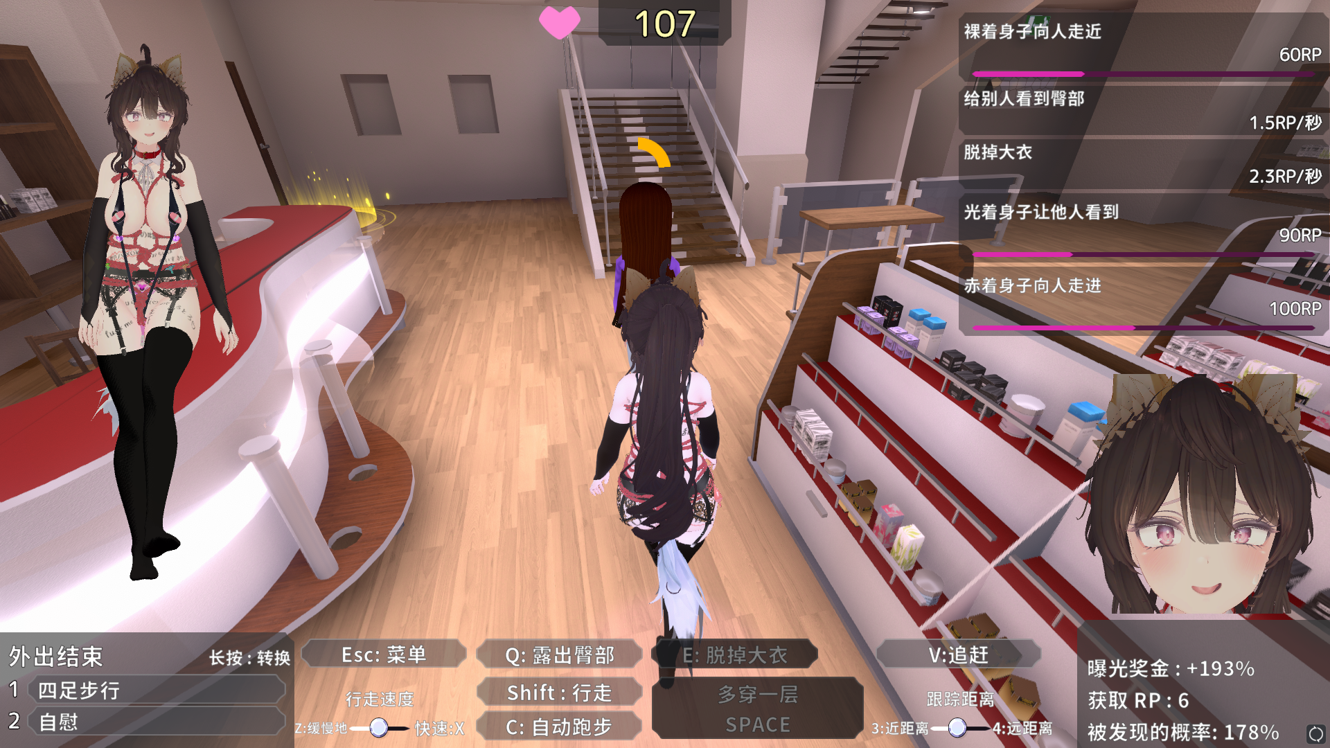 通过露出赚取点数购买配件,涂鸦,发型等