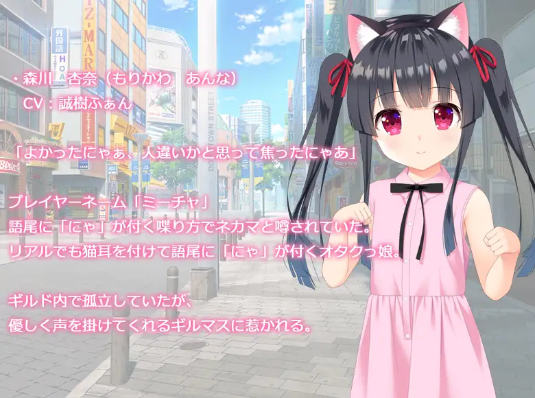 传闻中公会中的 "nekama"--结局为 "Nya "的女性角色米查(Meecha)向他请教角色发展方面的问题。