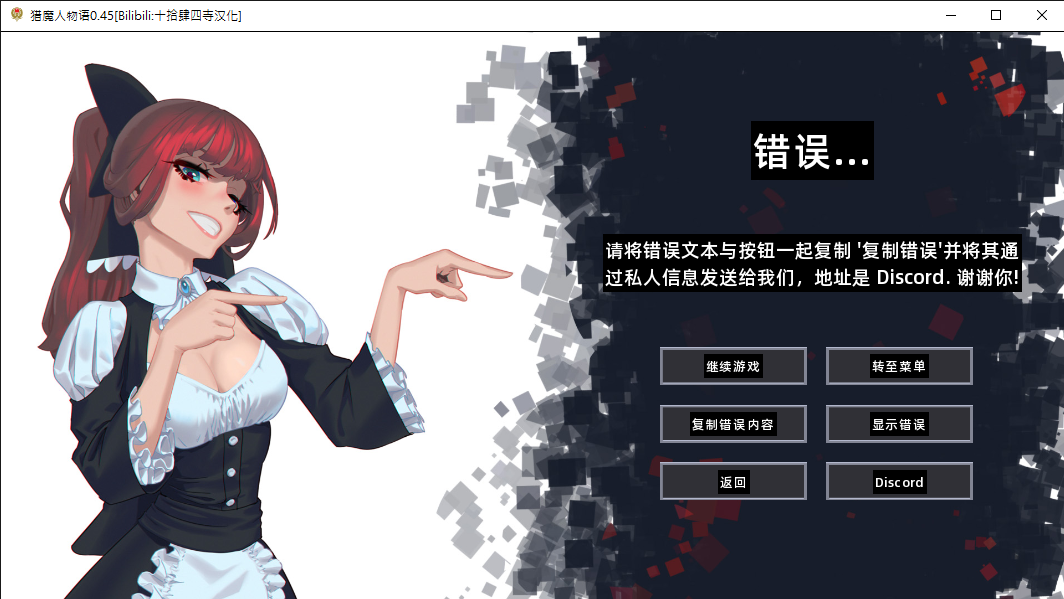 解決方法:按下繼續遊戲就好了,報錯是漢化的問題不用反饋(