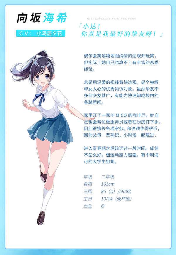 《青夏轨迹》是日本美少女游戏资深大厂GIGA/Entergram出品的一部青春题材的视觉小说。本作由在动画与轻小说界均有活跃的知名插画家U35负责原画与角色设计,由大地小猫与冬野胴服联袂担当剧本。由新锐音乐人虾丸咖喱伯爵制作音乐。人气声优小鸟居夕花、夏和小、和实羽优希为本作女主角献声。片头主题歌由超人气歌姬KOTOKO献唱,片尾主题歌由新锐歌姬紫咲萤献唱。