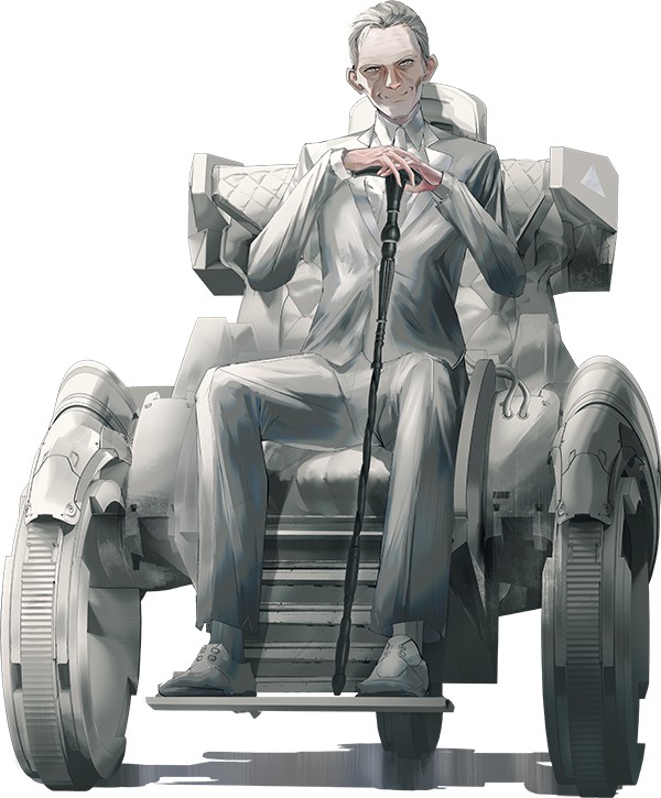 制定「针对被奇点机械追杀的人类的救济计划」的老人。 他通过无人机向Jude提出了一份交易。 只能隔着监视器向外对话,本人的实际所在地不明。 |