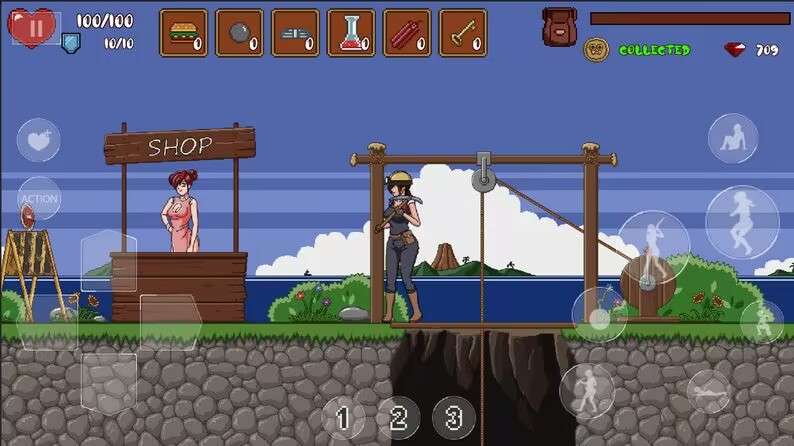 滞后(创作的贪欲寻魂很有名气)作者的另一作品HTA(作者本人喜欢这么叫这款游戏)全程以打怪、解密、救援贯穿整款游戏(暂时)我们将会作为海莉来下矿挖宝。