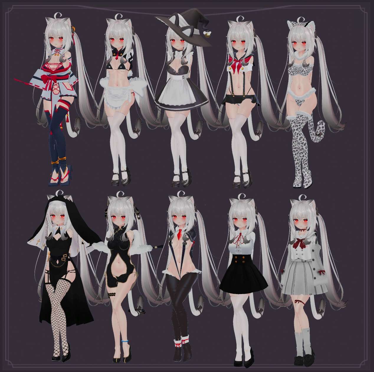 衣服共有10种。另外,可以选择显示・不显示衣服上的部件。