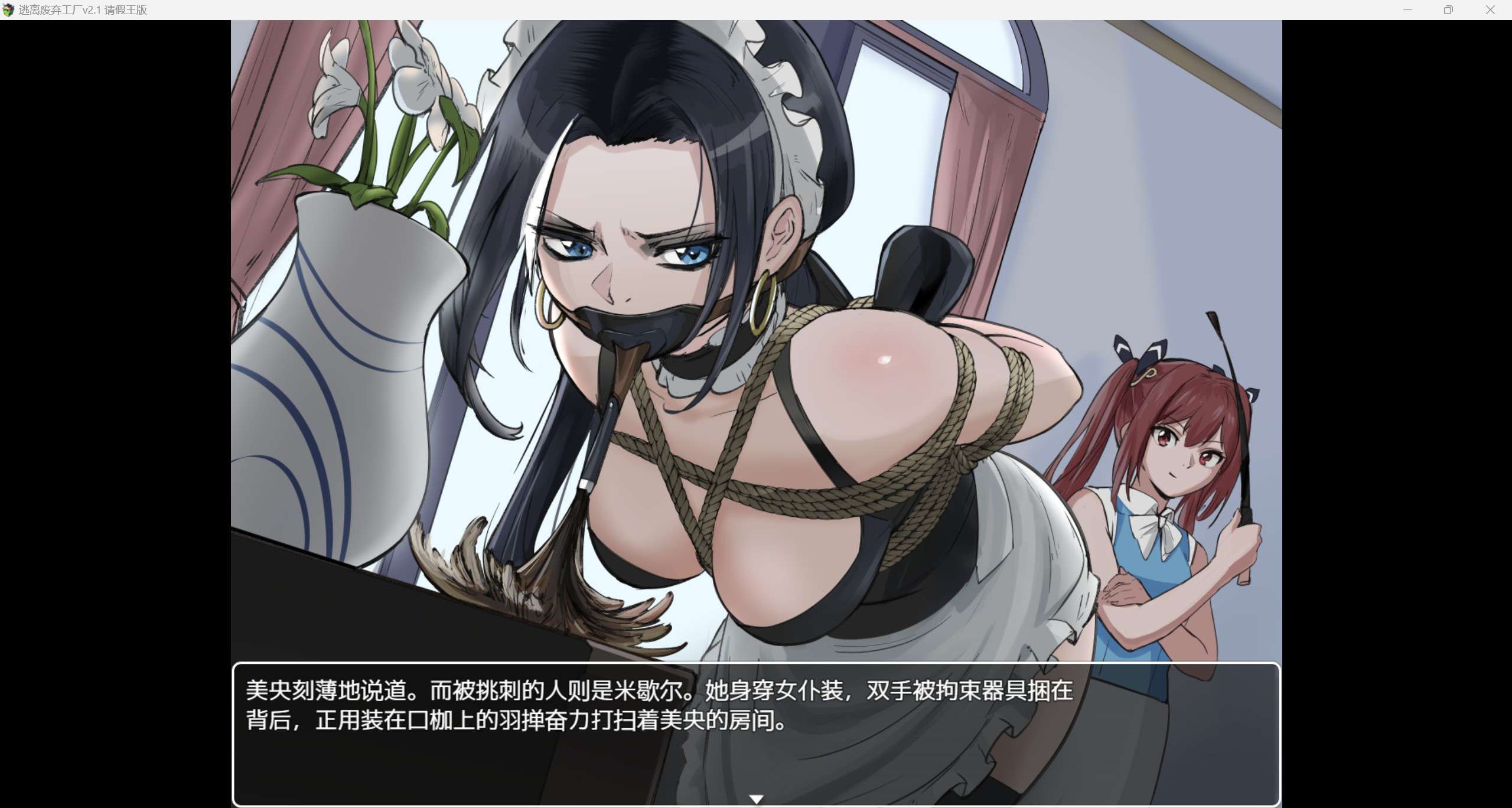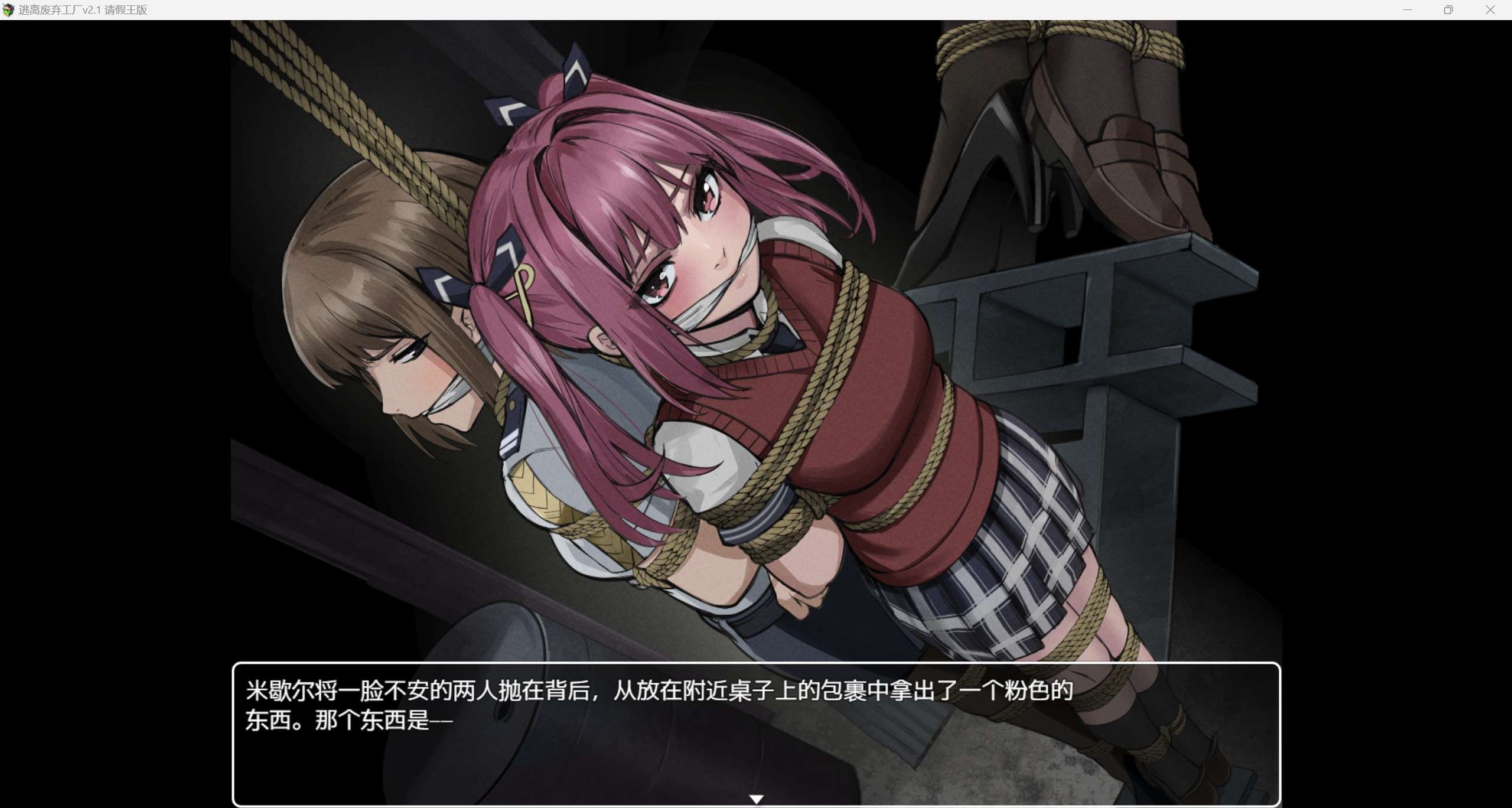 游戏介绍: 美央是个千金小姐,她被神秘女人假扮司机迷晕; 醒来后她发现自己被囚禁在一个废弃的工厂里, 她能从被捆绑和堵住嘴的状态中安全逃脱吗? 在另一个密室里被拘束囚禁的女警小姐姐又是?