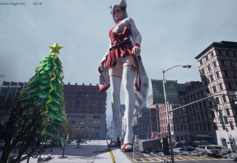 你将操作一个大型女巨人摧毁一切,身高在 50-80 米左右,但现在她可以长到 300 米左右,并且仍然可以有不错的表现。(只是不要同时砸碎太多建筑物)我将碰撞从实时体形碰撞更改为更加基于计算的碰撞。因此,碰撞可能会变得不那么准确(您在玩游戏时会感觉到),但是,性能要好得多。同时,建筑物破坏效果以前是在 CPU 上计算的,现在它在 GPU 上运行(通过 Niagara 粒子系统),速度提高了大约 500%。