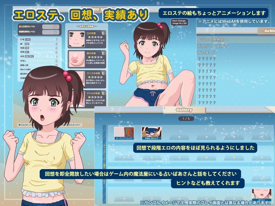 - 玩家角色:玩家操作的角色是男性,目标是提高女主角对主人公的“好感度”和“羞耻度”数值。