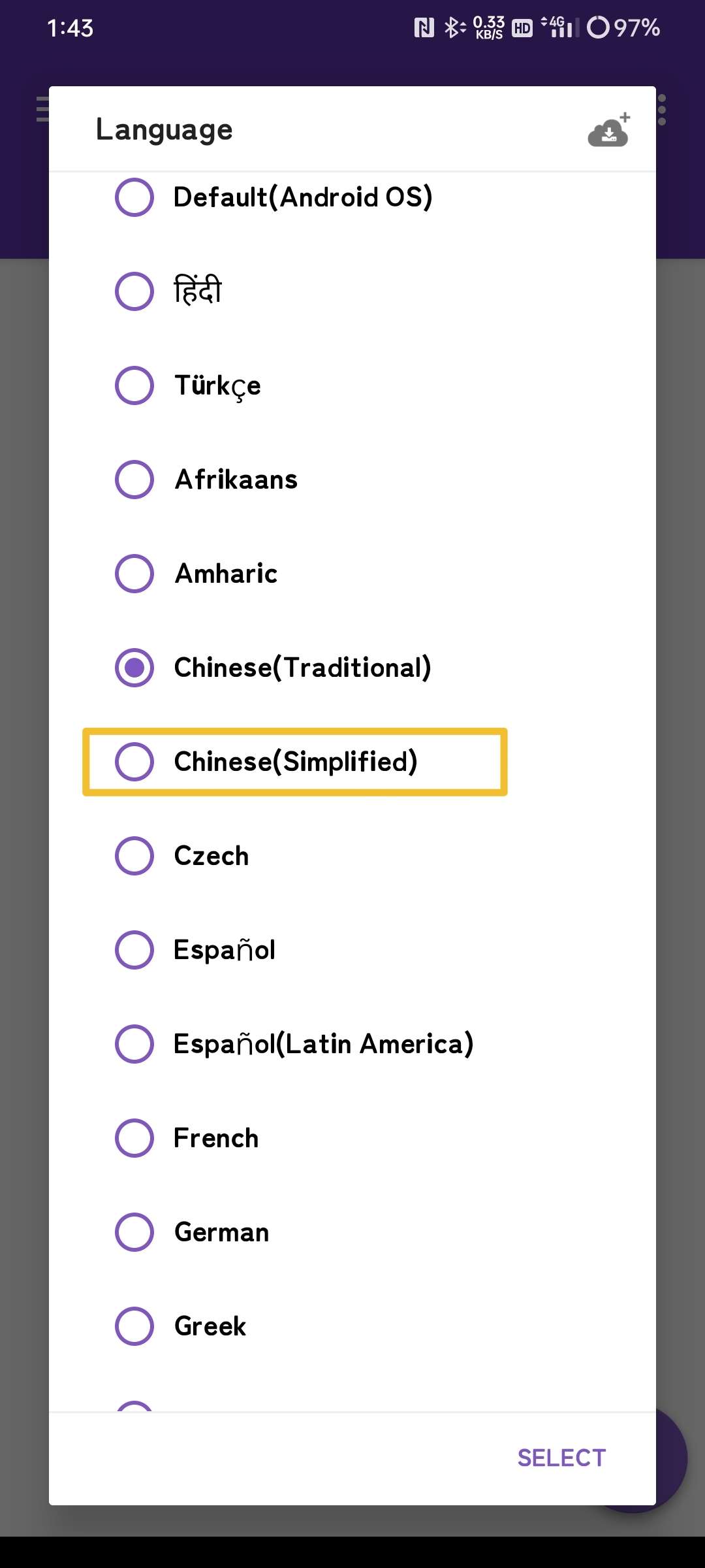 下滑,选择简体中文