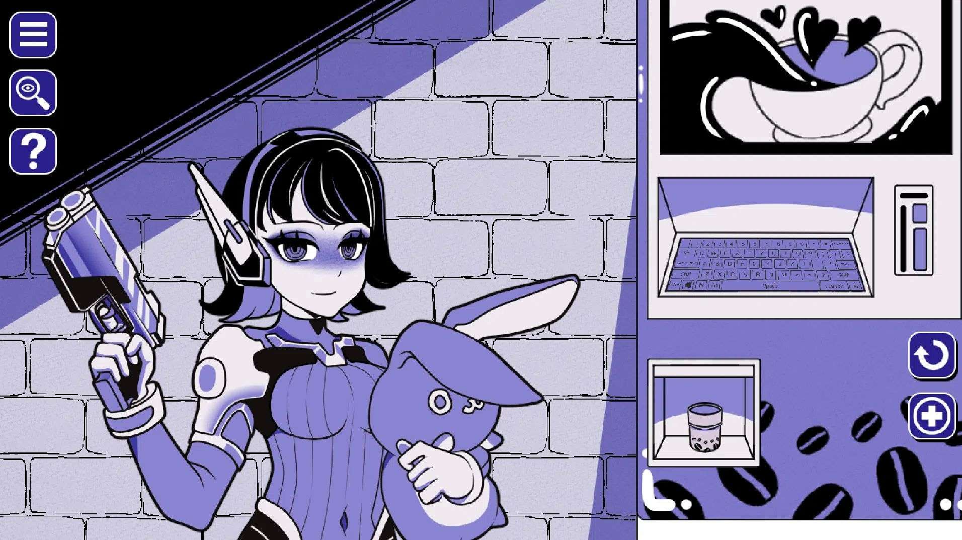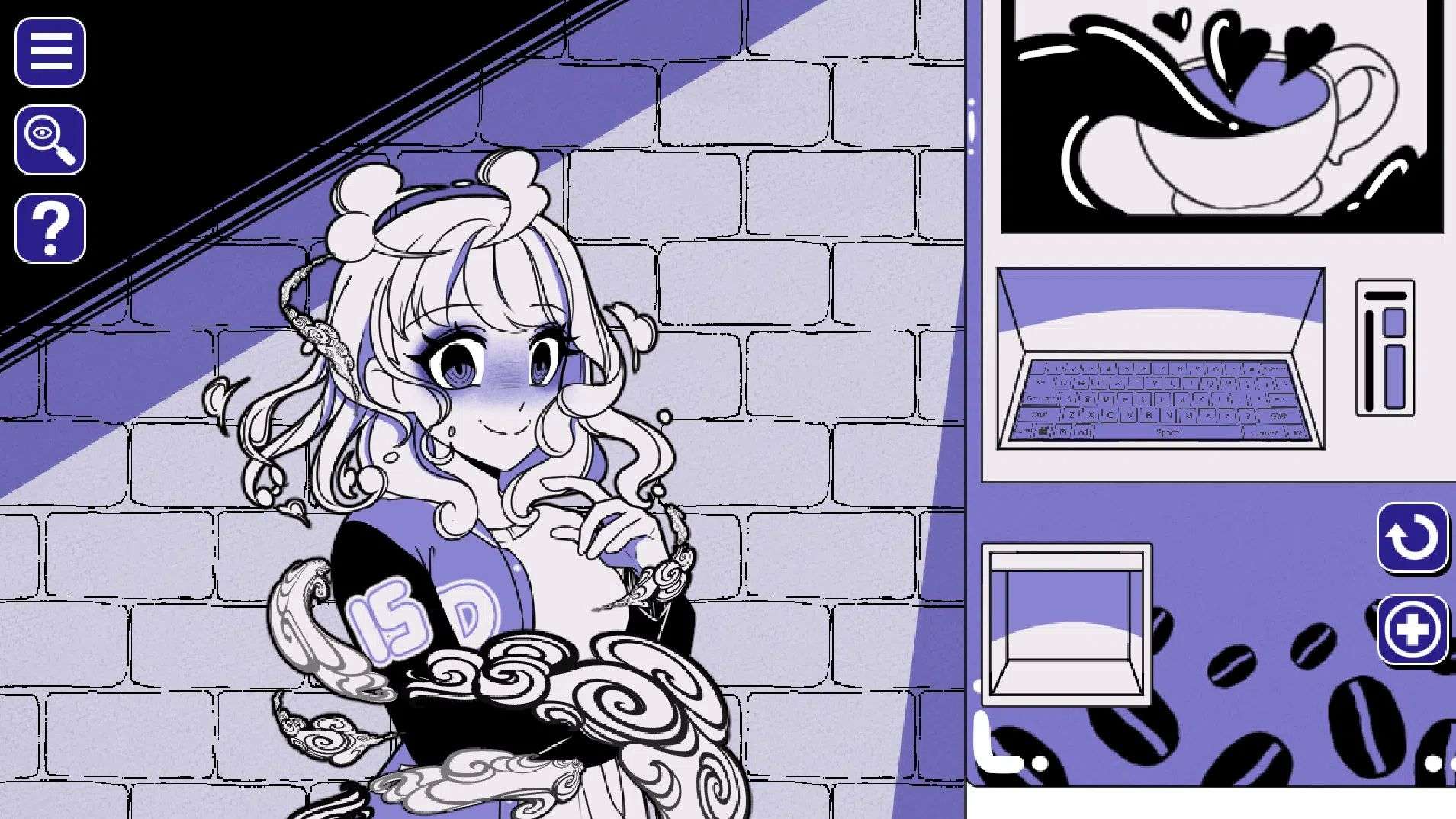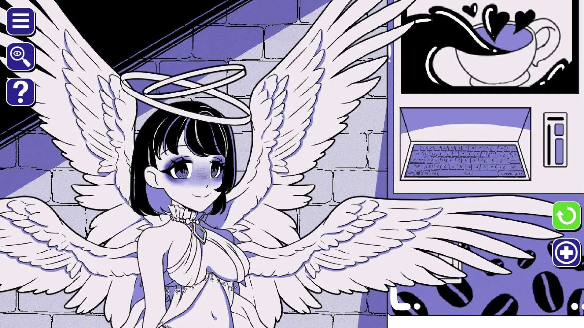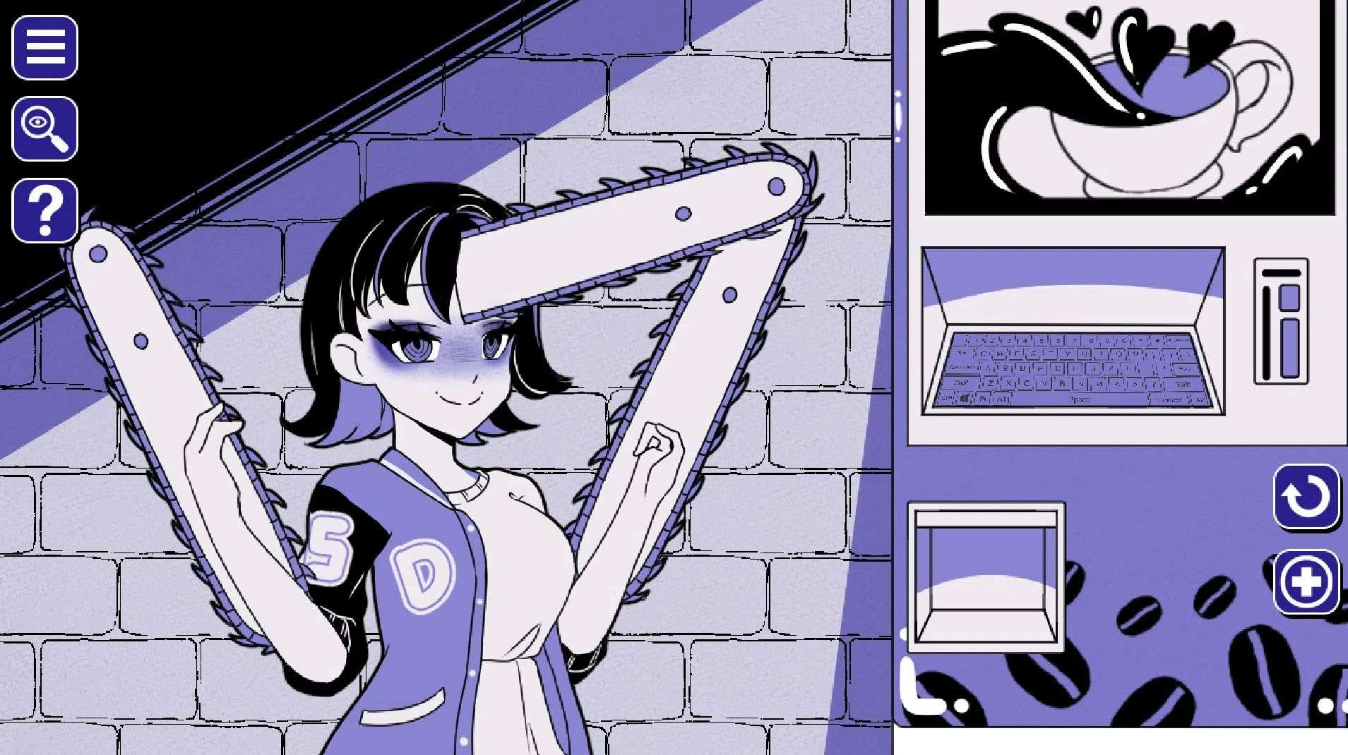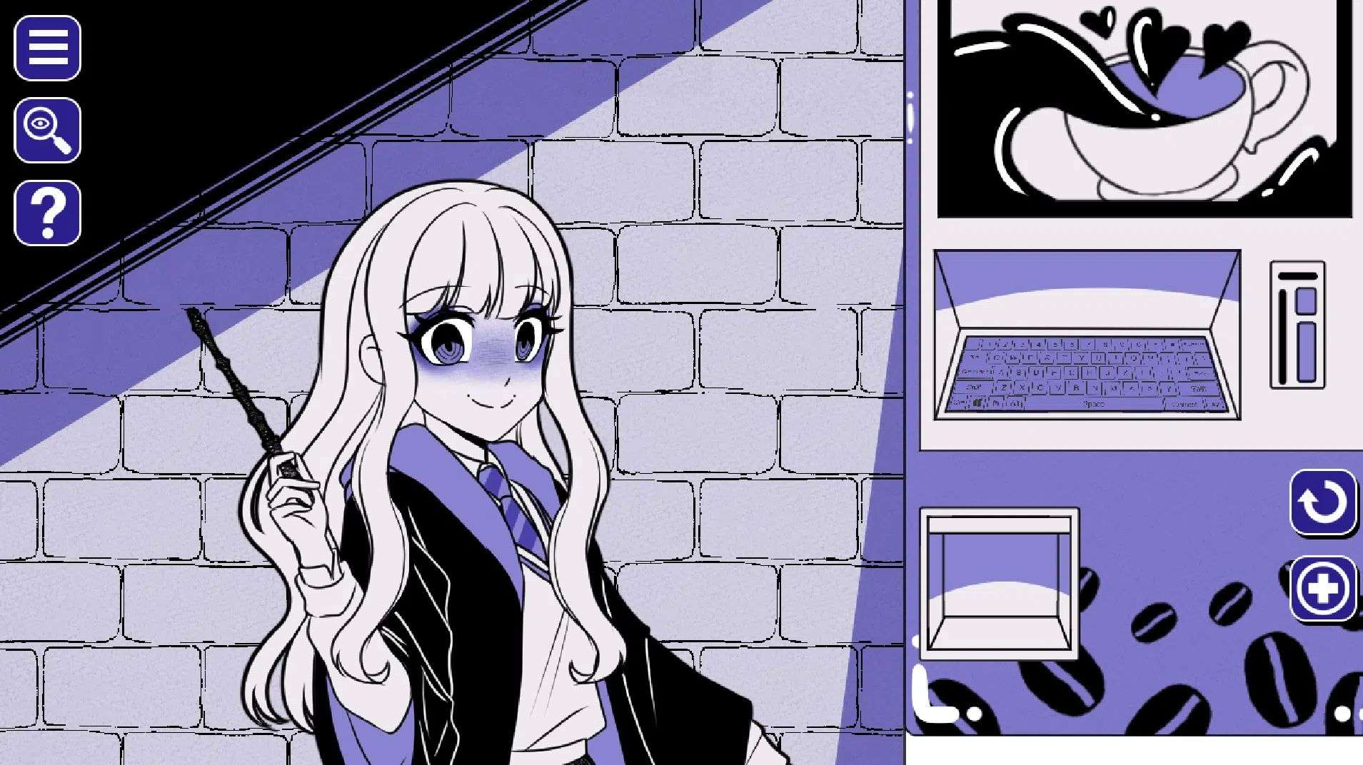 注意:作弊码需要通过点击主界面里女主手里的咖啡杯所打开的键盘输入,如输入某些无效的话就先开始游戏随便输几个单词(cat、dog、fox、maid)再返回主菜单。