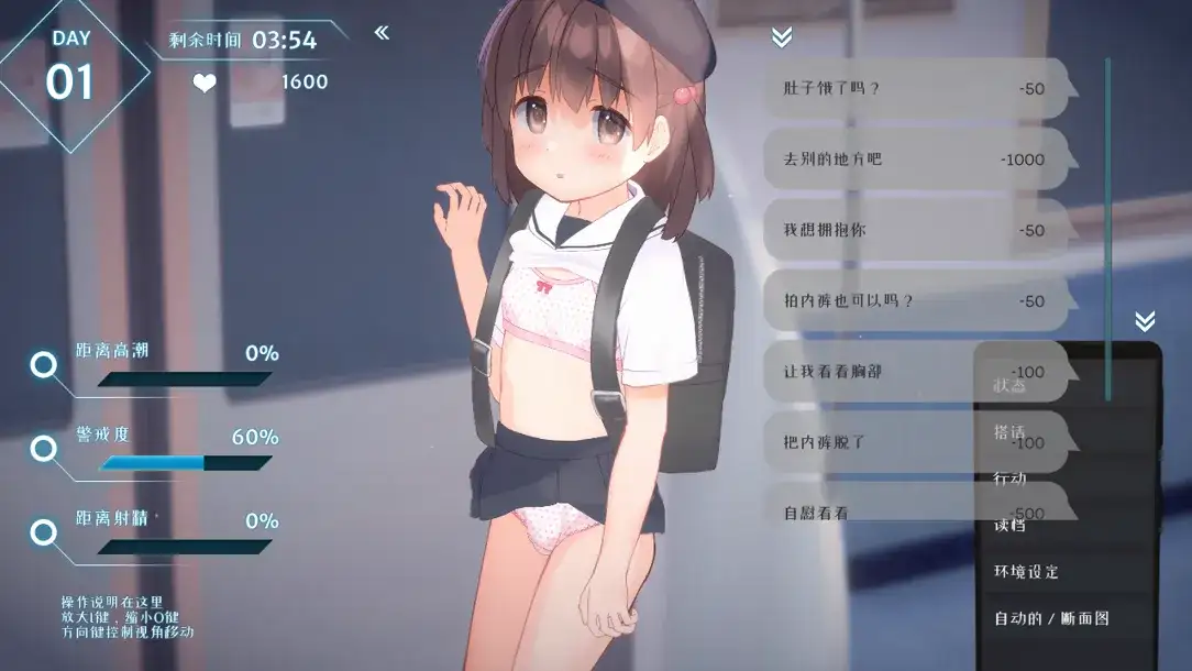 除了鼠标操作,还能通过选项和她搭话,选择穿脱衣服或命令她的行动。