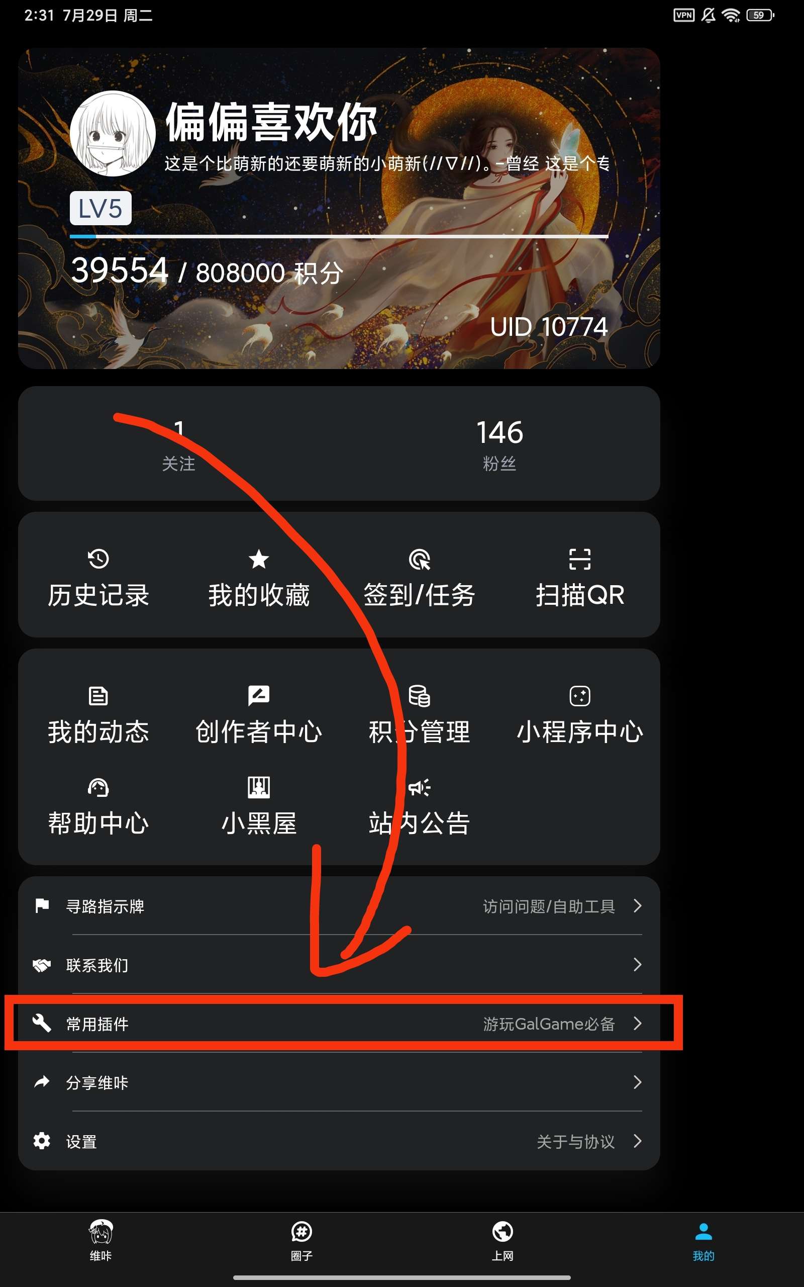 我们进入维咔主页面,然后点击右下角(我的)按钮
