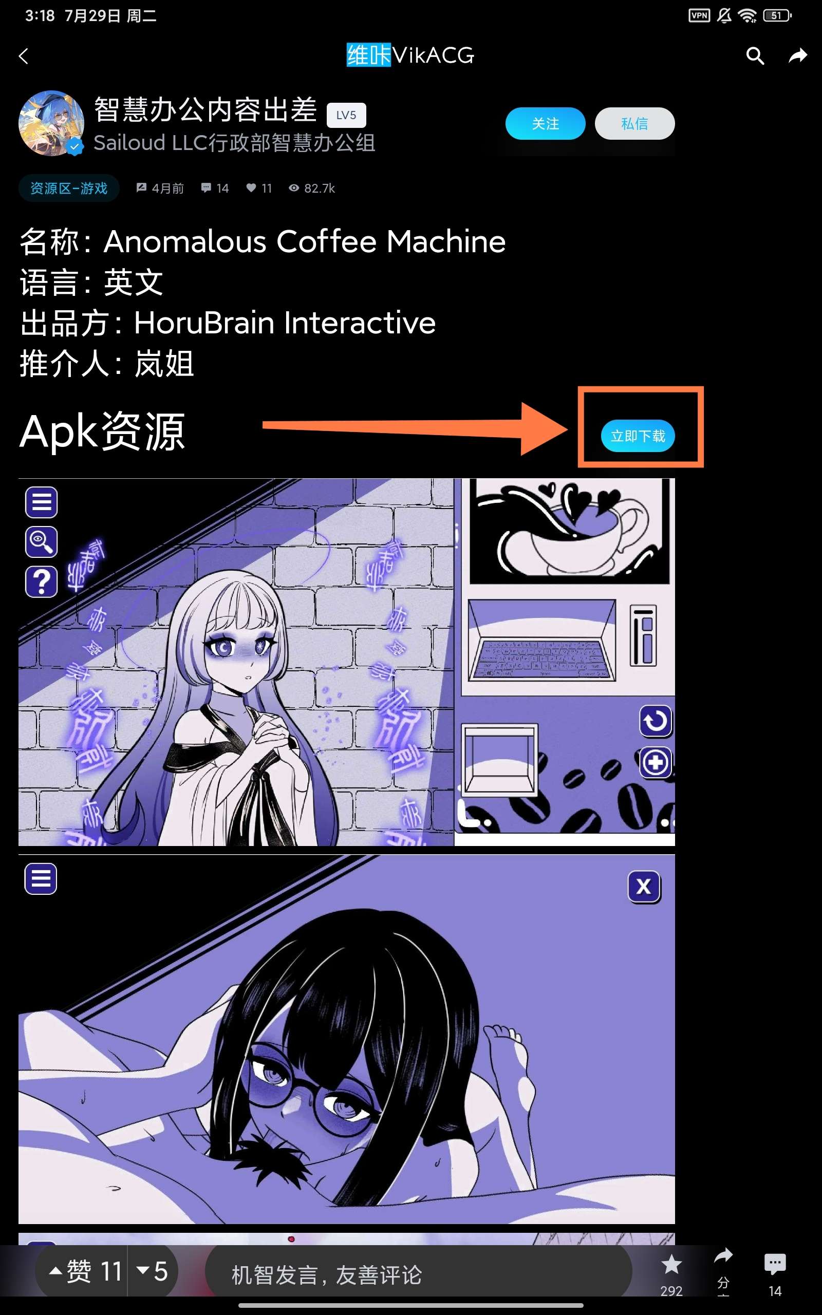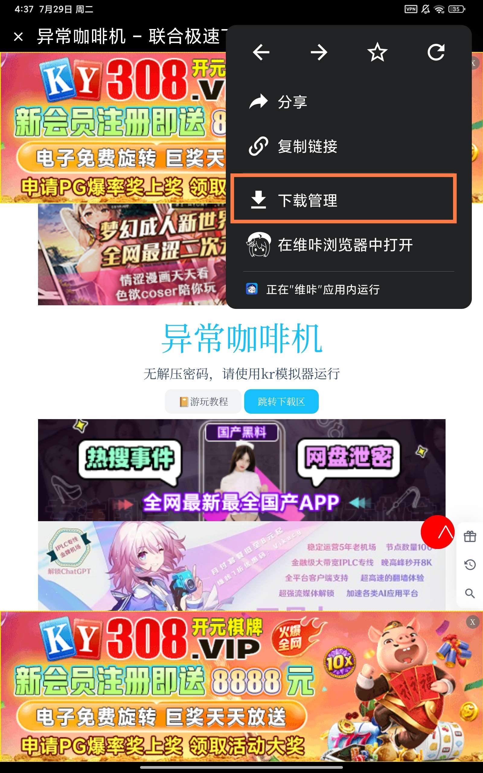 我们重新回到主页找到那个,异常咖啡...,然后点进去