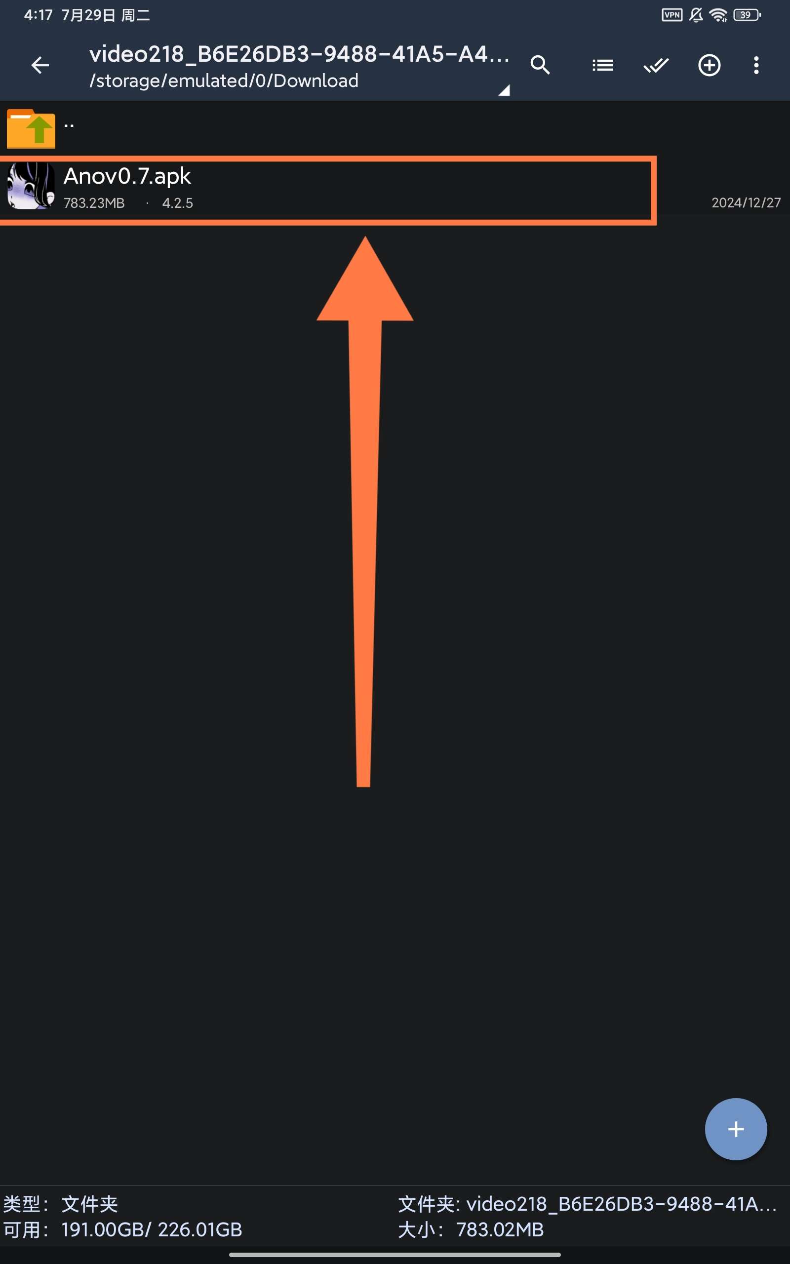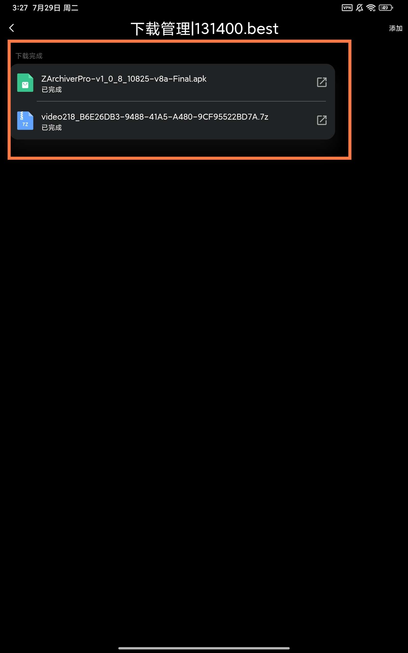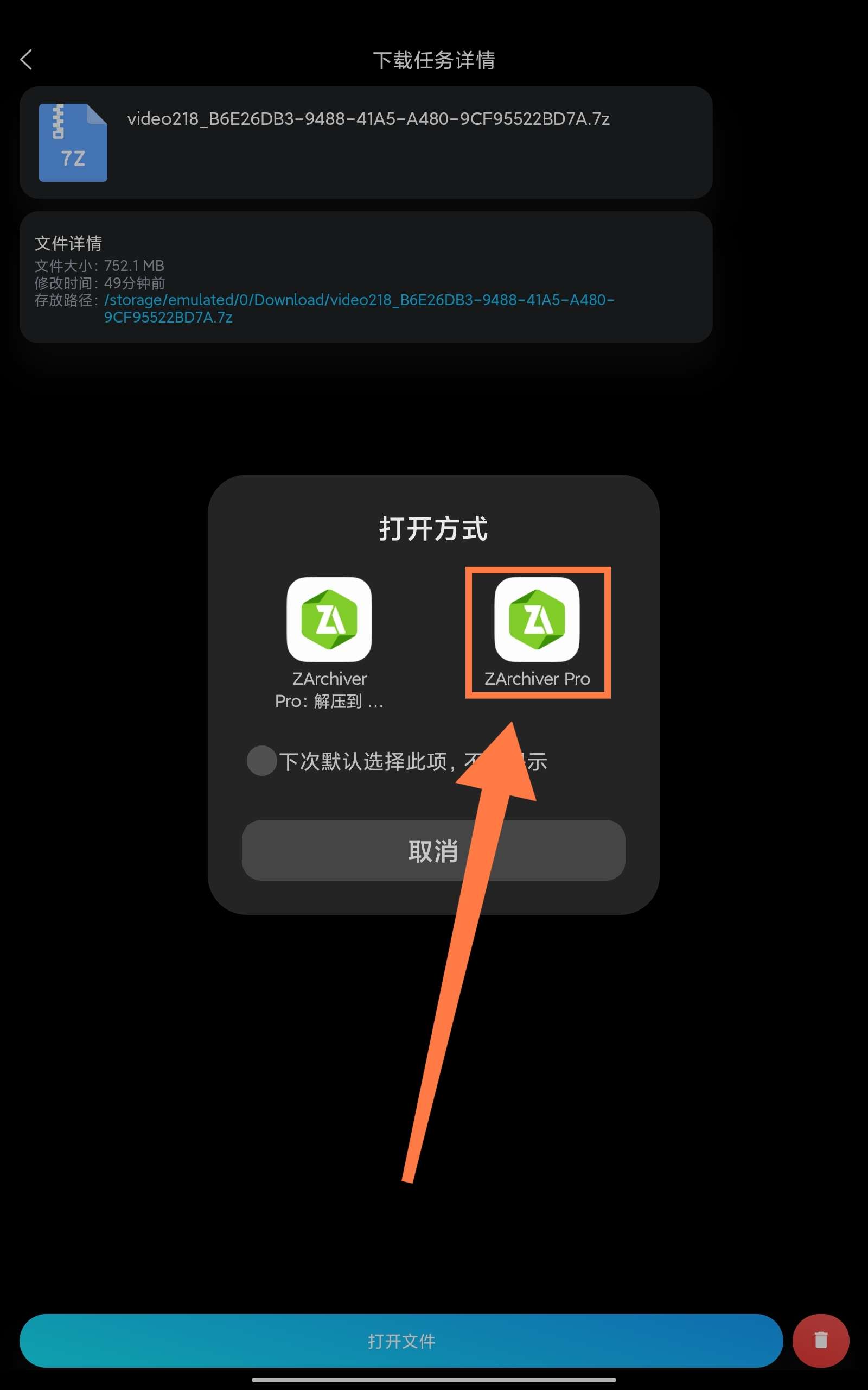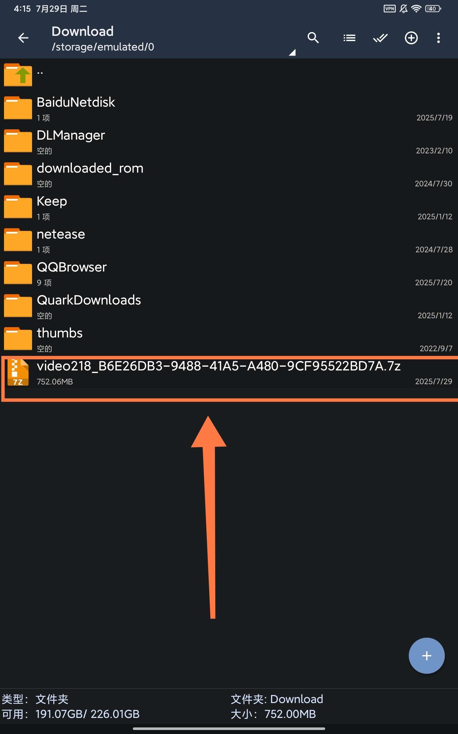 首先返回下载管理页面,点击这个下载好的video,并用解压软件打开
