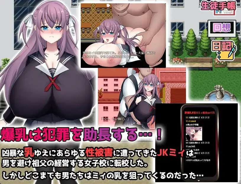 简介:宫川美衣,一个拥有奇迹般K罩杯巨乳的高中女生,得以转学到她祖父开办的学校。然而,这也为她丰满的胸部带来了新的问题……从第一次性征开始,胸部便逐渐发育,如今已经成长为K罩杯的巨乳。正因如此,她经常遭到恶作剧、粗暴对待,甚至被异样的眼神盯着,经历了许多屈辱的事情。那令人难以置信的巨乳总是被好奇的目光打量,也因此她没有朋友。个性软弱、不善于强硬表达自己,也成了她的烦恼来源。