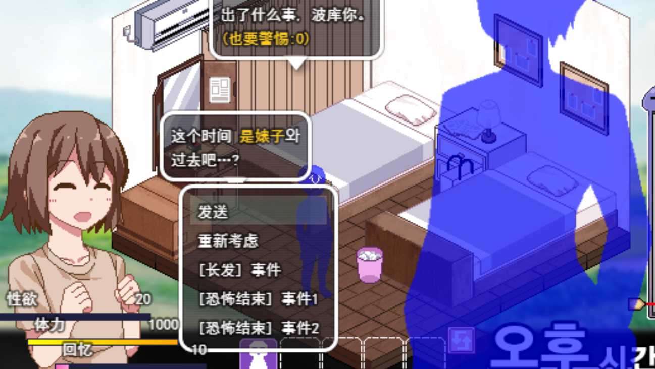 剧情分为三类,第一类便是(长发事件),因为是韩国人魔改的游戏,所以都是韩文的,使用了AI翻译,但有一些不准确,这个剧情应该是小男孩也就是我们的男主,没有被NTR的剧情,姐姐和姑母都是属于他。