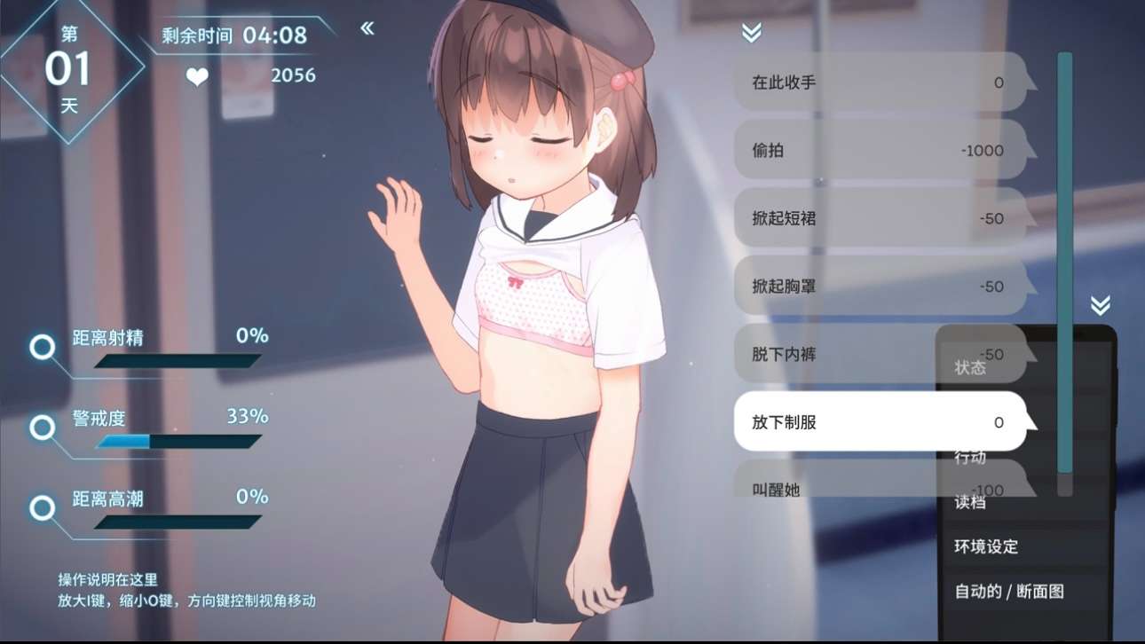 除了鼠标操作,还能通过选项和她搭话,选择穿脱衣服或命令她的行动。