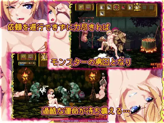 若在战斗中被击败,将被怪物带回巢浦西,并触发凌○题材的像素动画エロ场景。