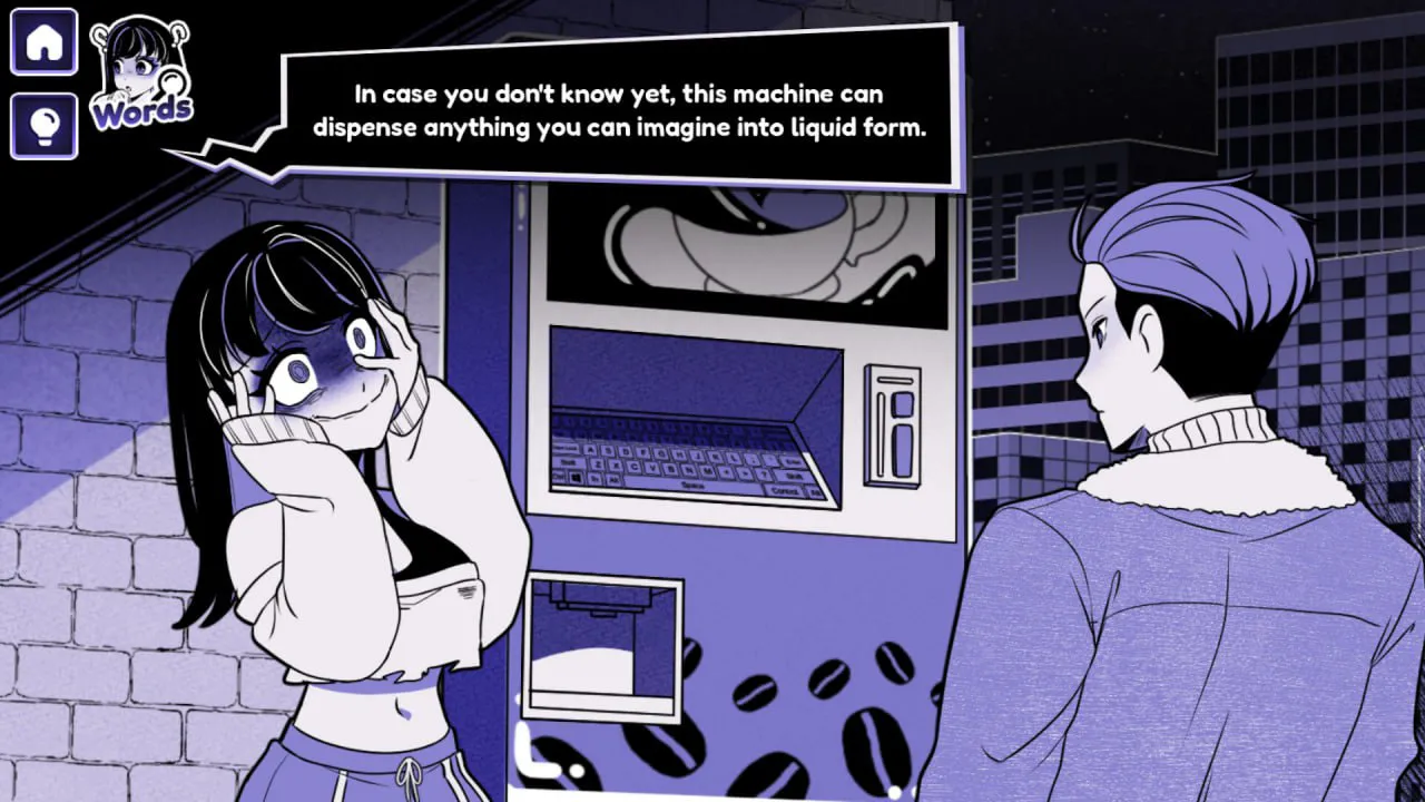 输入单词给咖啡机,咖啡机就会流出对应的液体,给女孩喝过之后就会产生对应变化,说白了就是各种单词的组合,一些单词一直重复也会变成特殊的样子。一般看着正常的形象,输入sex或者fuck就可以瑟瑟,有些不是很正常的也有,点名fish+love。输入human即可让女主变成初始的形态,某些形态输入human没用就输入bomb直接炸死强制初始化。有时候女孩会询问你是否要随机生成一杯咖啡,如果不怕出现猎奇可以试着喝一杯,目前有552个单词以及459个形象,已输入的单词可在左上角目录里查看,也可以在主界面里查看画廊。顺便提醒一下现在除了女主会死玩家也会死了