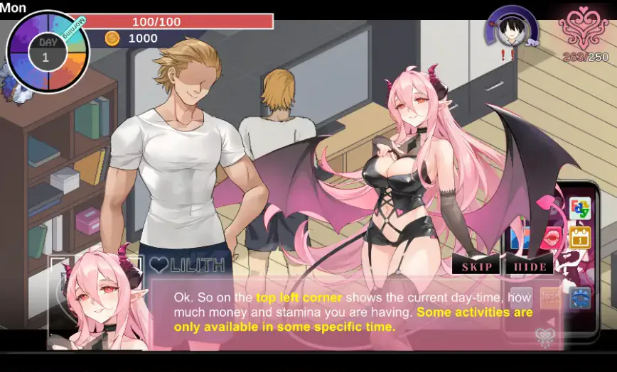 最大不同是男主还有一个魅魔可以召唤出来使用特殊技能帮忙攻略女主。