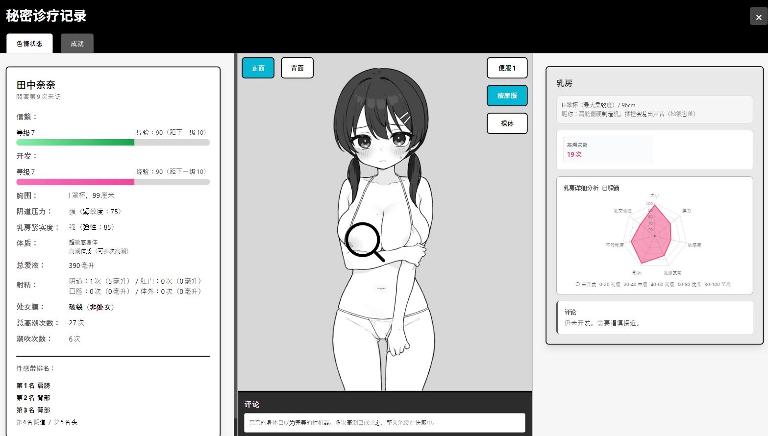 以“体检”为名的一款羞耻系触摸游戏,可以让纯洁的女孩子在你的手中逐渐被开发的「背德按摩模拟」类游戏
