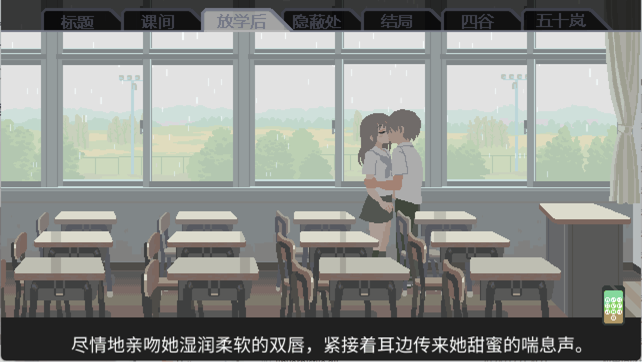 “在没有人的教室里,雨声回荡着…我和你的淫荡行为将被掩盖…”