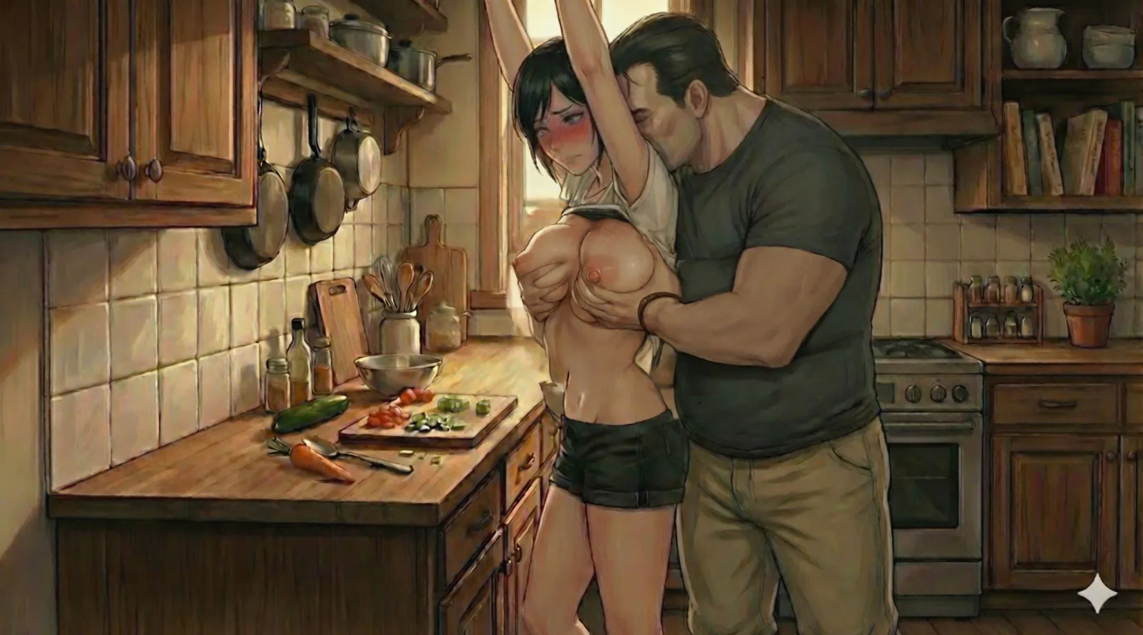 与继兄和继父共同生活的女孩。