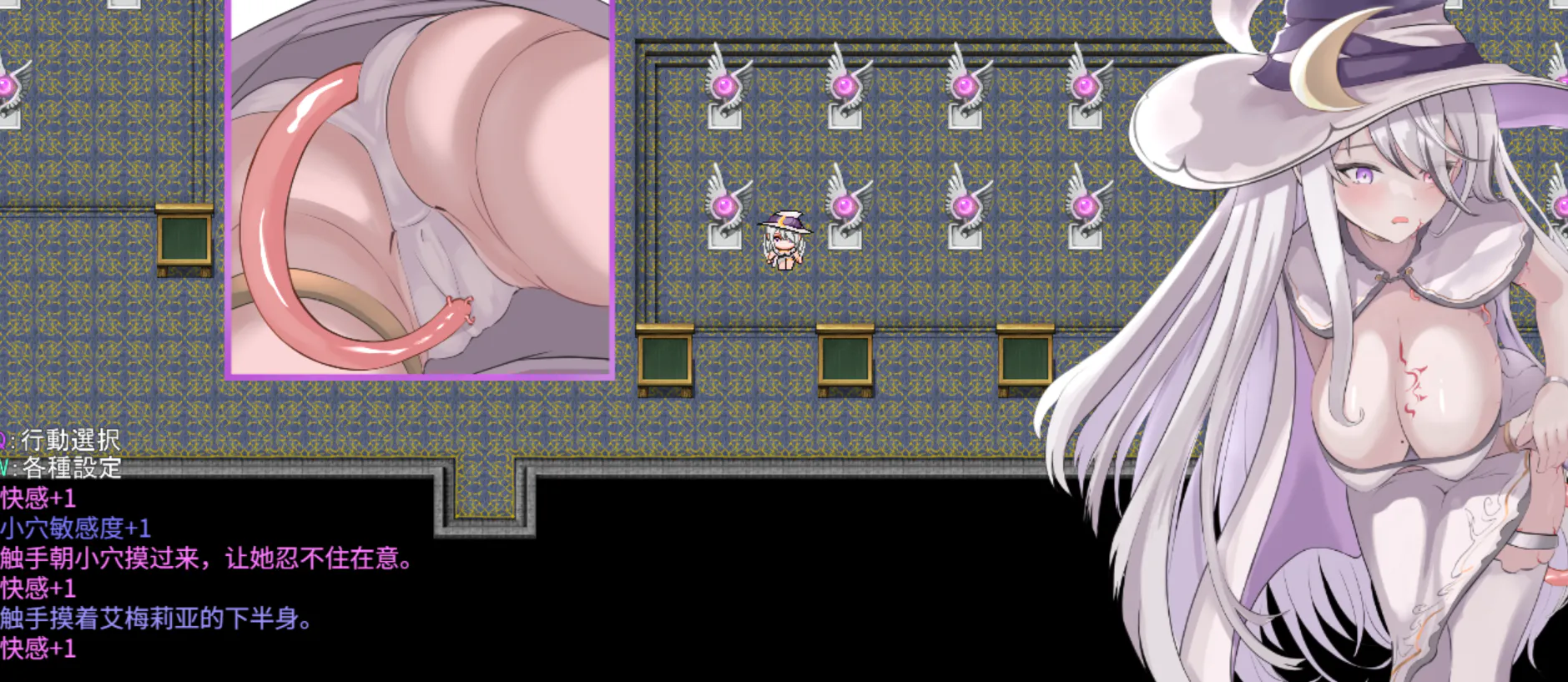 这是一款在探索迷宫的过程中,主角艾梅莉亚会遭遇各种猥亵情境的Roguelike RPG。