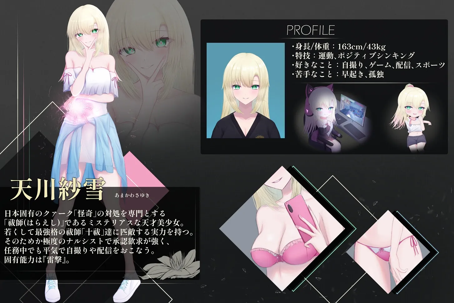 纱雪既是驱除怪奇的祓师,又是超人气主播,在探索宅邸的过程中也频繁进行直播。