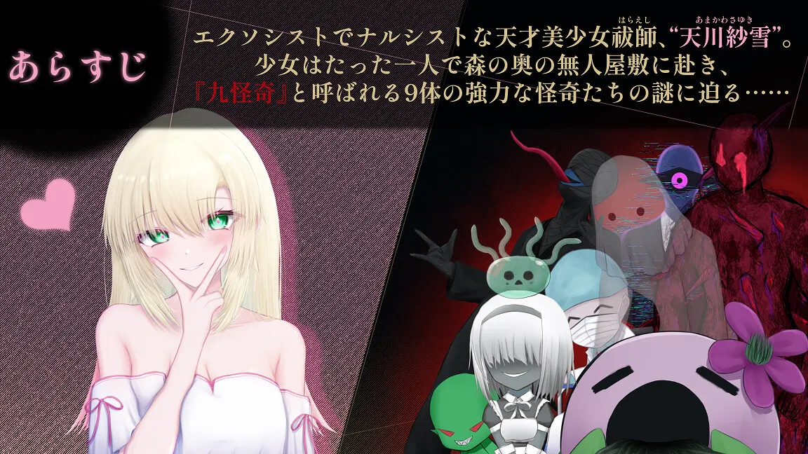 《天川纱雪与屋邸的九怪奇》是一款操作简便、横版卷轴式的色情探索恐怖游戏。