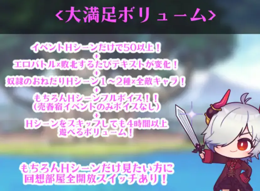 -相比该社前作魅魔随从只有一名女主,本作多达12名以上的女主,人类,精灵,女巨人,圣女,女武神,天使...各种族的大姐姐们都会对小洛基进行无情炸金。
