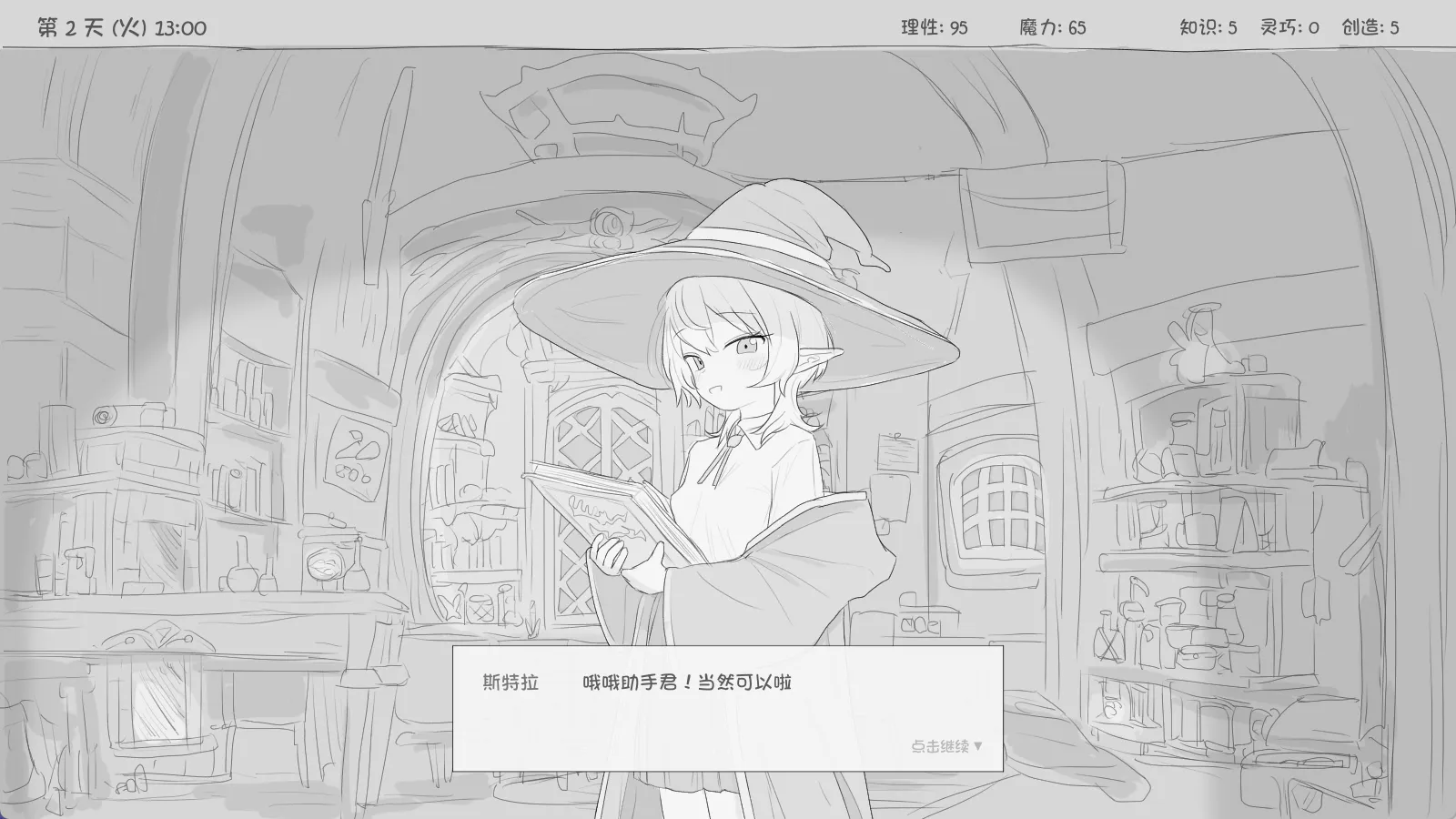 与隐居魔女的30天【PC/互动SLG/新作/黑白风/爆款/养成/动态/汉化中文】