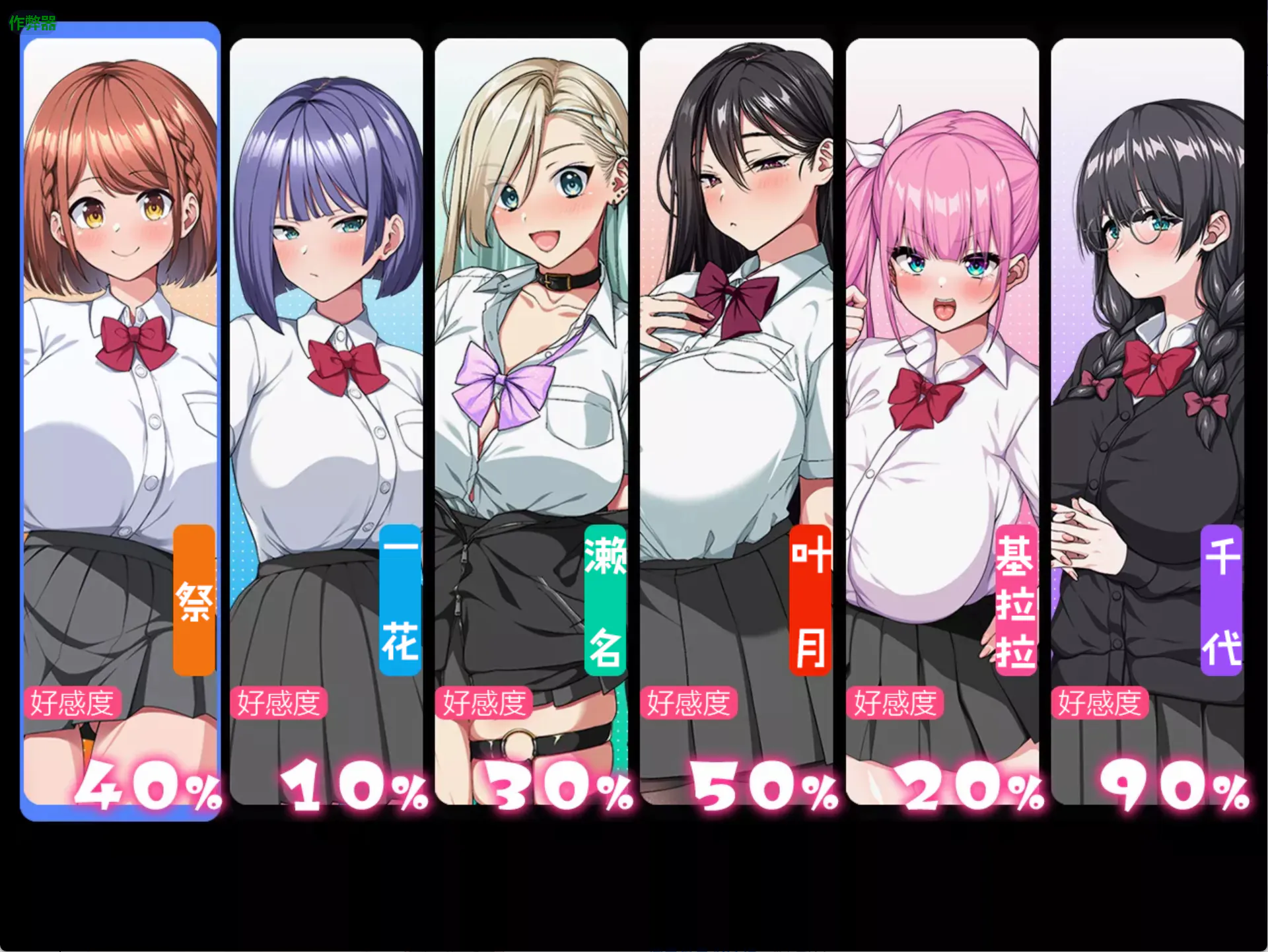 当您从菜单屏幕打开好感度时,您可以看到每个女主角对主角的喜欢程度♪