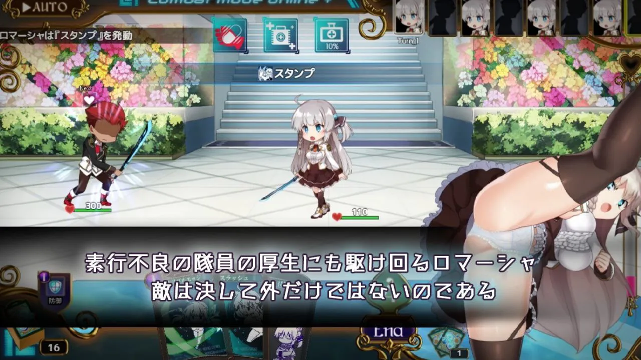 部分敌人存在名为“干扰”的行动,会消除她服装数据的部分。干扰所消除的部件顺序多样,可享受各种脱衣组合。