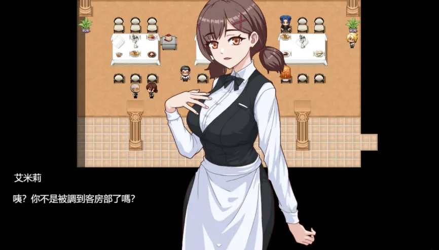 日常需要再【客房区】打扫客房赚取金钱,在【商业区】下方的【便利店】可以消费金钱。