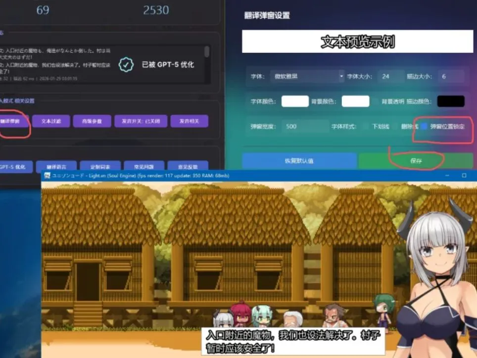 翻译窗口会跟着鼠标走,可以在仪表盘的通用注入模式相关设置里面的翻译弹窗中将弹窗位置锁定,然后用鼠标拖到你像放置的位置就行了,汉化效果看截图!