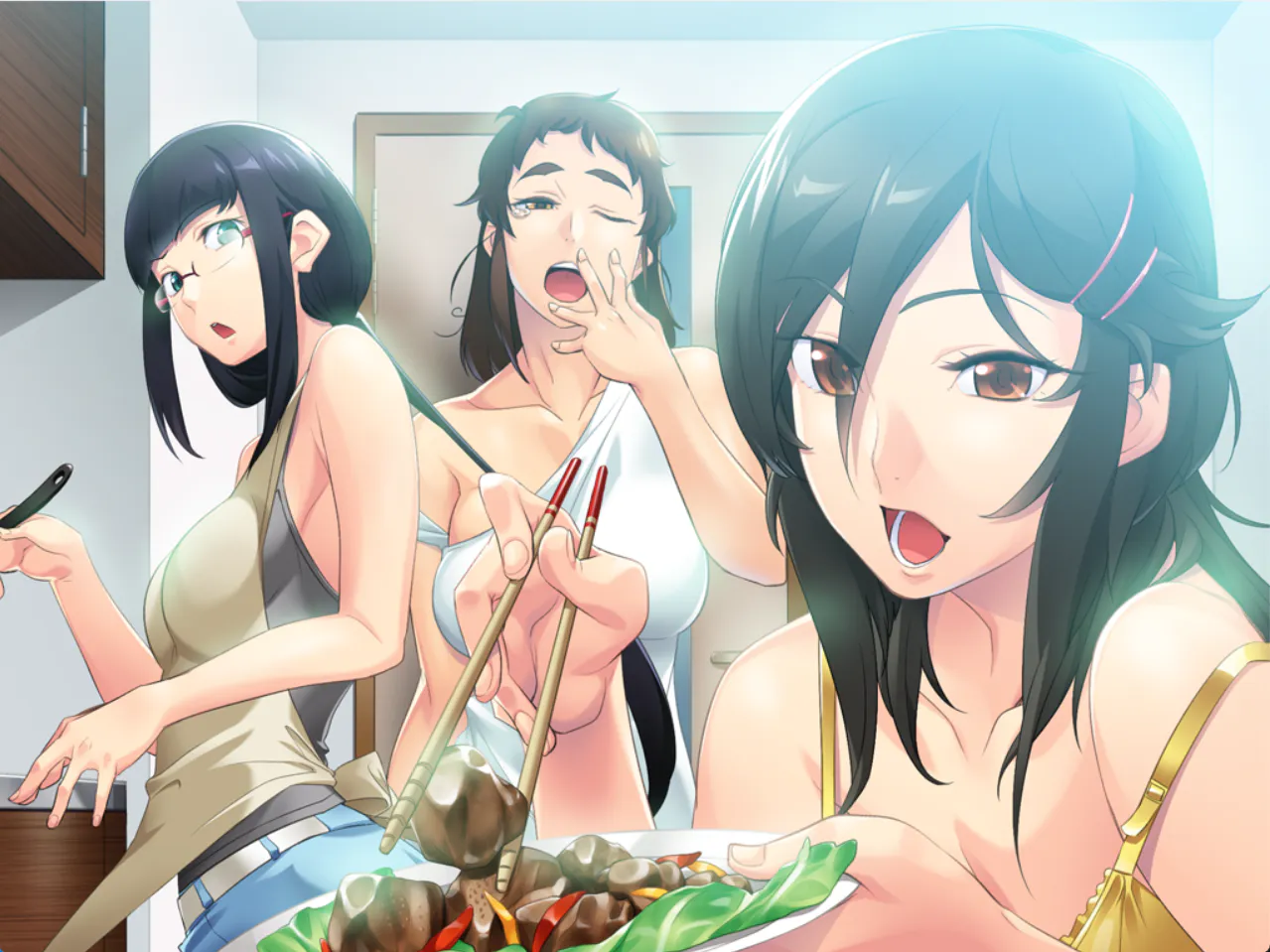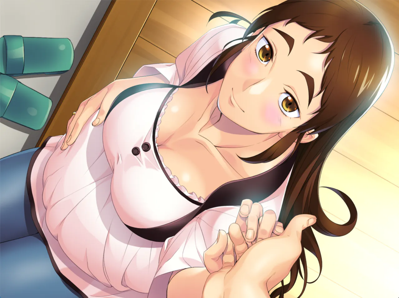 说完,她抓住拓人的手臂,把他的手贴到自己的胸部上。