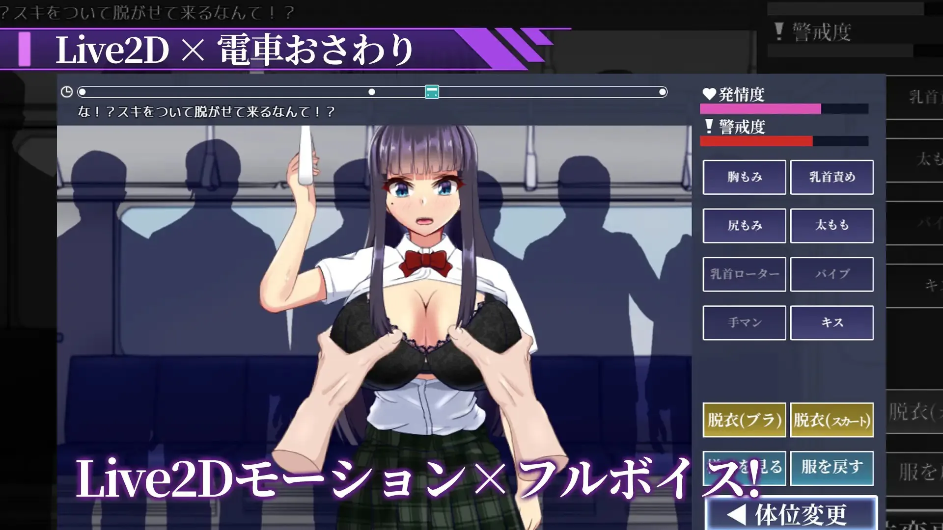 乳头刺激/手指挑逗/振动棒/阴道插入……等 ■脱衣(4 种)※随姿势变化 解开衬衫/掀起短裙/拨开胸罩/褪下内裤