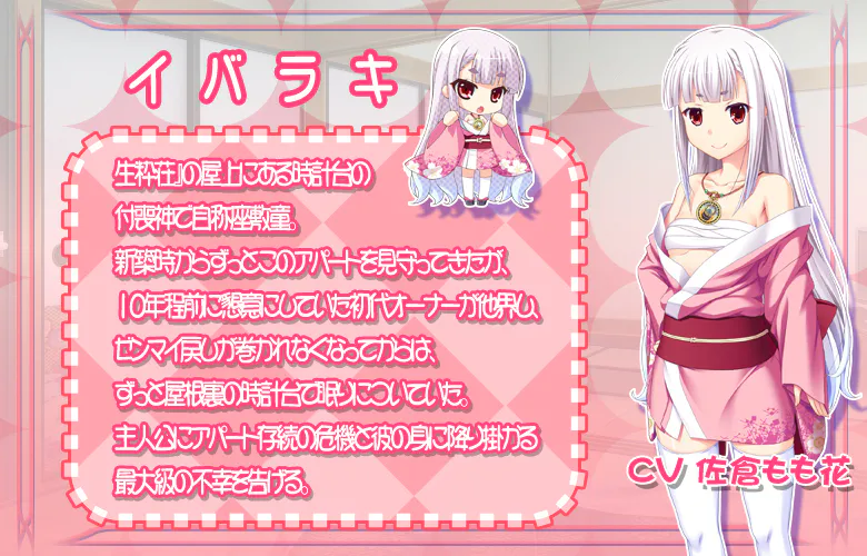 主人公・芦藤聡志是个靠奖学金上大学的穷苦学生。 现在在住的居民都是群散发着强烈的玄阴灵气的女孩子,如此放任不管的话,半年后公寓将会有某种大难发生。不管用什么方法都无法阻止它被拆毁。 若要规避这股灾厄的话,就必须要将融合了聡志和イバラキ力量的纯阳之气注入给居民们。 就这样,赌上自己的一生,无比荒诞的对公寓居民中出作战,开始执行! |