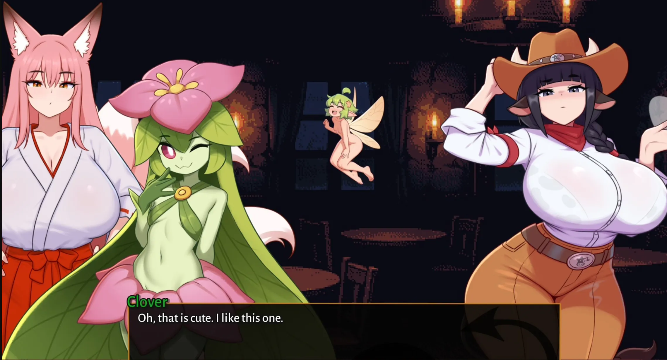 2D游戏、2DCG、冒险、内射、恋爱模拟、奇幻、女性主导、手淫、后宫、幽默、内心视角、哺乳、男性主角、经营、自慰、手机游戏、怪物娘、口交、第一人称视角、点击式、性玩具、挑逗、乳交、变身、阴道性交、处女