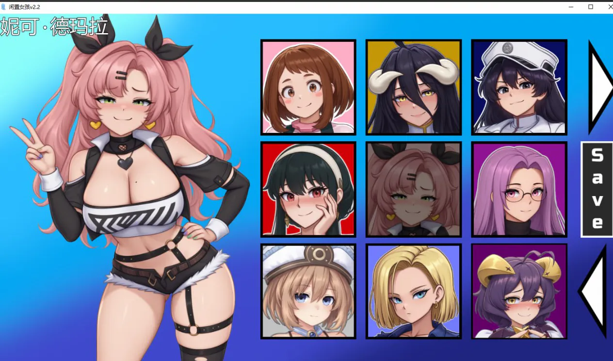 由Hizaki制作的R18闲置点击器(Ren'Py)。收集20+热门动漫waifu,通过点击闲置狂刷经验升级角色,购买诱人换装解锁全动画H场景(3速切换高潮连发),卡牌收集助力收入爆炸加速征服。v2.2更新A18哥特装&Illya比基尼新解锁,UI优化新手速入坑,画廊135+卡片全开狂欢,适合喜爱waifu养成与动画H收集的玩家。
