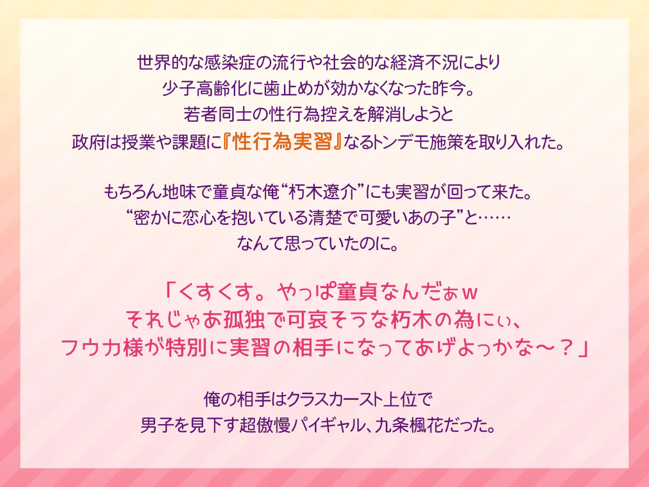 生意気な巨乳ギャルと性行為実習!?へ実は処女なんて言えないし~ 原画 铃音玲奈 |