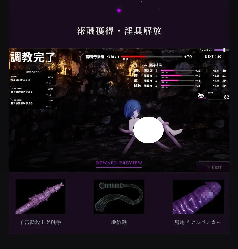 如果你获得大量奖励,还能获得熟悉的春药,比如子宫奔跑杀手触手、地狱鞭、恶魔肛门掩体、邪恶猩红刺虫和“快乐破坏者”...... 你可以释放强大的淫秽工具!
