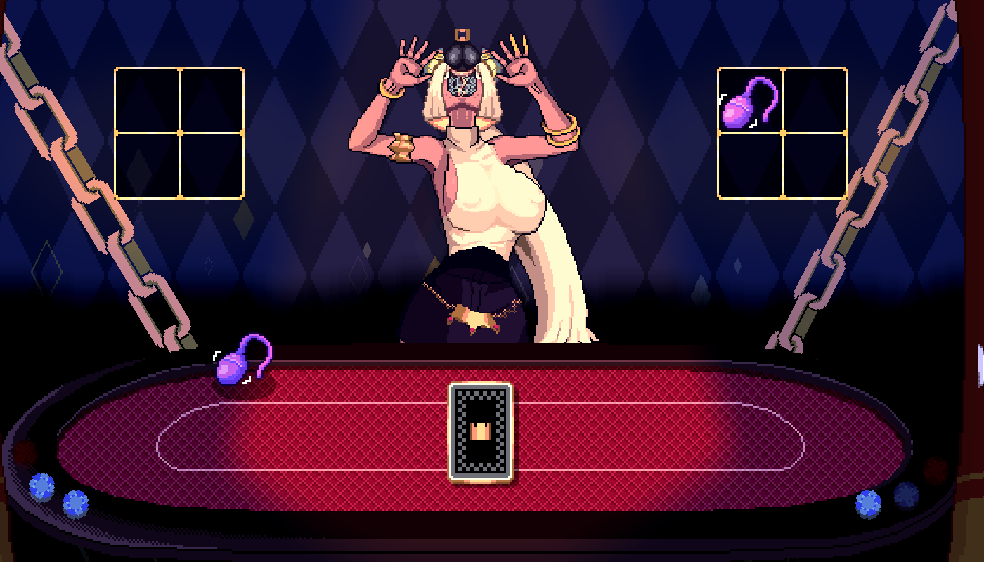 使用8张卡牌来玩魅魔轮盘。两人进入,一人离开。拿你的性命下注,掷出命运的骰子吧。祝你好运。